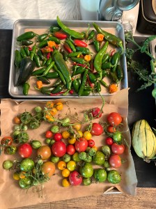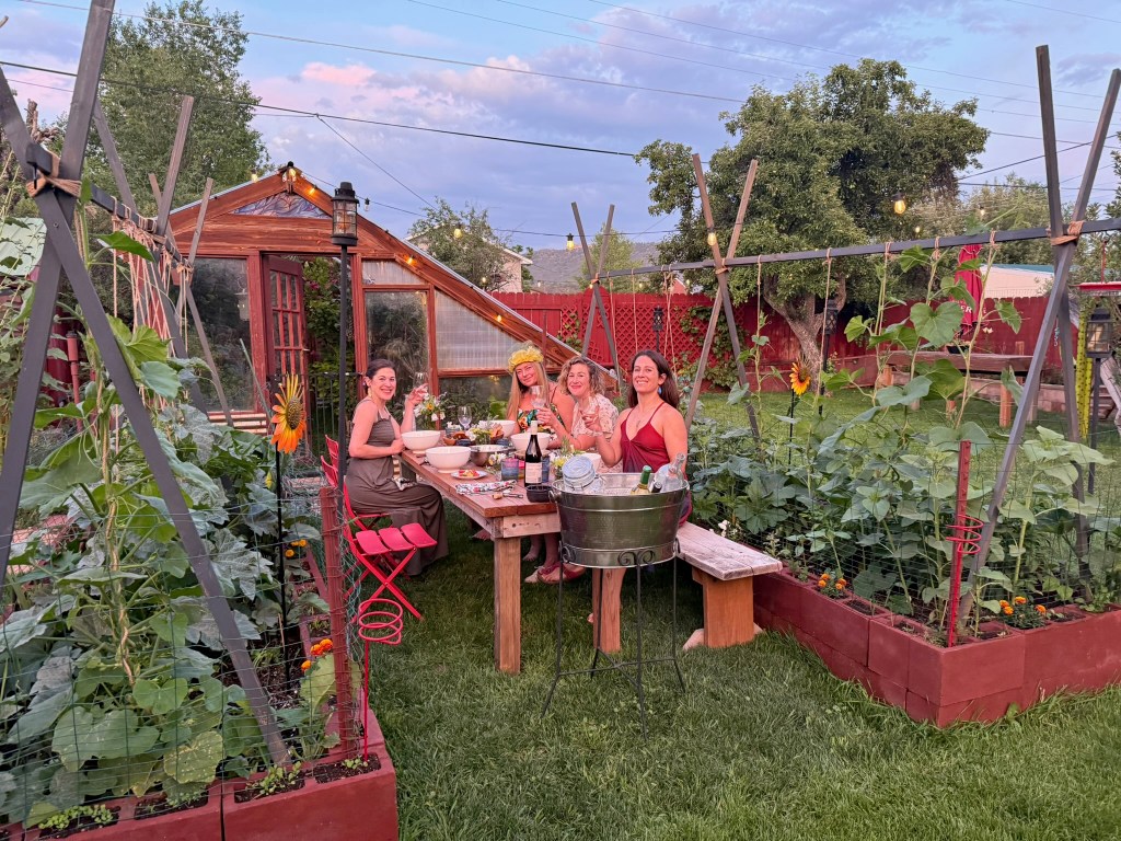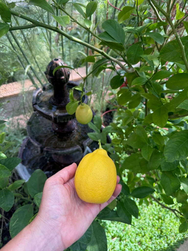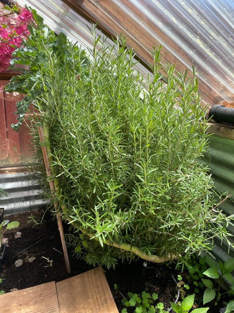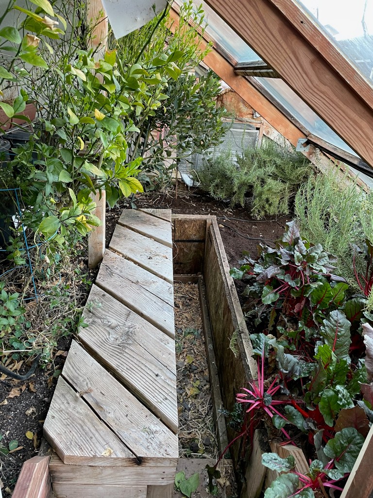 It is a year-round home to a mature Meyer Lemon tree, a Bay Leaf tree, rainbow swiss chard trees, nasturtiums, sage and of course our signature rosemary bushes.