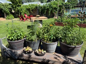 Outside you will find eight Concord & Himrod grapevines . Two heritage apple trees and a pear tree all grafted to multiple varieties. Garden beds full of heirloom vegetables all from seeds we have saved. More raised beds full of flowers, herbs, potatoes, garlic, and native pollinator plantings.