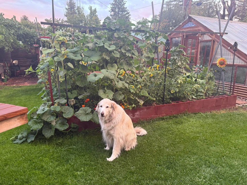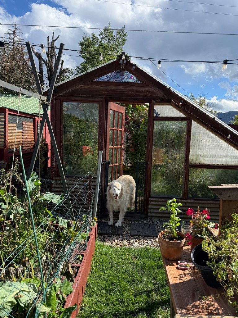 Lily, our 12-year-old Great Pyrenees rescue, is the queen. She just may show you her own treehouse.